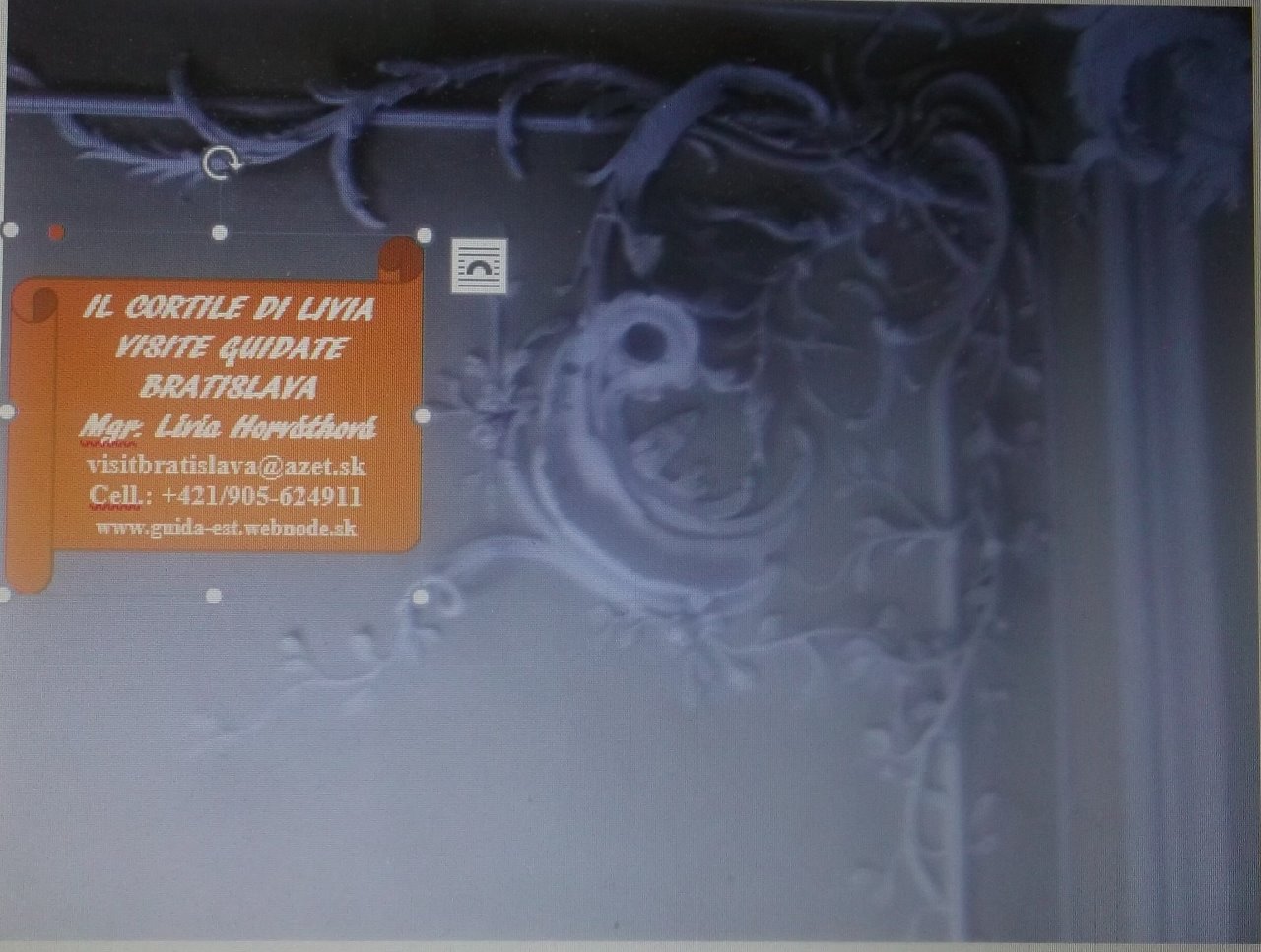 PARTECIPARE ALLE VISITE GUIDATE O ALLE PASSEGGIATE CULTURALI CON IL CORTILE DI LÍVIA E’ SEMPLICE, BASTA MANDARE UN SMS AL CELLULARE DI LÍVIA HORVÁTH +421/905-624911 O INVIARE UNA E-MAIL VISITBRATISLAVA@AZET.SK (CHE VALE COME PRENOTAZIONE/CONFERMA) CON SCRITTO L’INIZIATIVA DESIDERATA CHE SI VUOLE PARTECIPARE, IL PROPRIO NOME E COGNOME E IL NUMERO DI PARTECIPANTI.