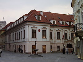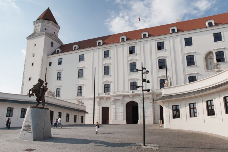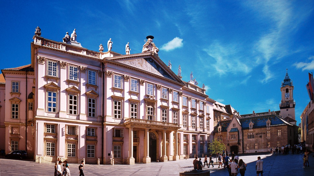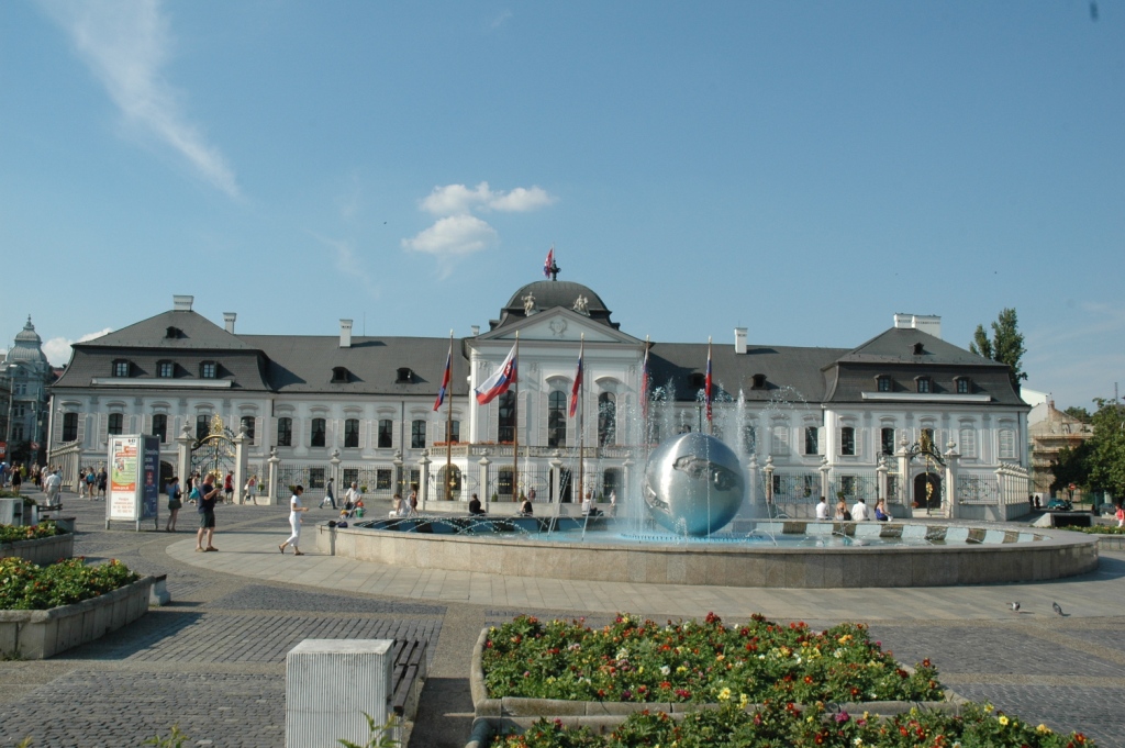 Arrivando al Castello di Bratislava si vede il Palazzo di Grassalkovich - attualmente sede del presidente della Repubblica Slovacca,