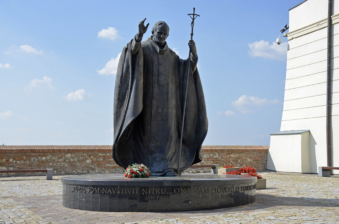 Nel cortile presso il palazzo vescovile si trova la statua di Giovanni Paolo II - ha visitato Nitra nel 1995.